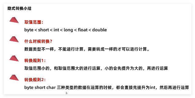 Java 的隐式转换遵循 "从小到大的安全转换" 规则: